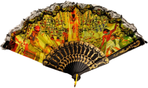 В Европе тоже веер был частью женского туалета. Наряд, прическа, маленькая сумочка, веер. Комплект. Но веер другой. На росписи – замок, овечки, природа, дамы на природе. Все как в жизни. Европейской жизни прошлых столетий. Они теперь по музеям лежат. Рядом со старинными нарядами. А современные дамы ходят посмотреть, приобщиться, вдохнуть аромат истории.