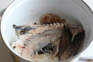 2. Филе режу на кусочки (не мелю на мясорубке). Скелет, хвост и кожа пойдут на бульон.