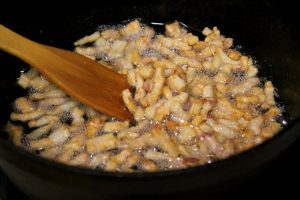 Или Вы не готовите их специально? Я тоже специально не готовлю. Но периодически готовлю себе кулинарный жир. Покупаю внутренний свиной жир, перетапливаю и получаю прекрасный жир для готовки. А в соединении со сливочным маслом… Ну, в общем, и курочку потушить, и уточку, или еще что. Вкусно и не горит. И точно знаешь, что там нет пальмового масла. Натопишь пару баночек и пользуешься.