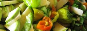 Ну что в нем такого? – Картошка, кабачки, перец и помидоры, вот и все. Правда из всего этого только картошка доварена, остальное, считай, просто заварено. Полминуты в кипятке побултыхалось, и все, выключила. Настоится немного. Суп такой полусырой. Из как бы бланшированных овощей. И получается магия какая-то. Вкус совсем другой. Не как у вареных, но и не как у сырых.
